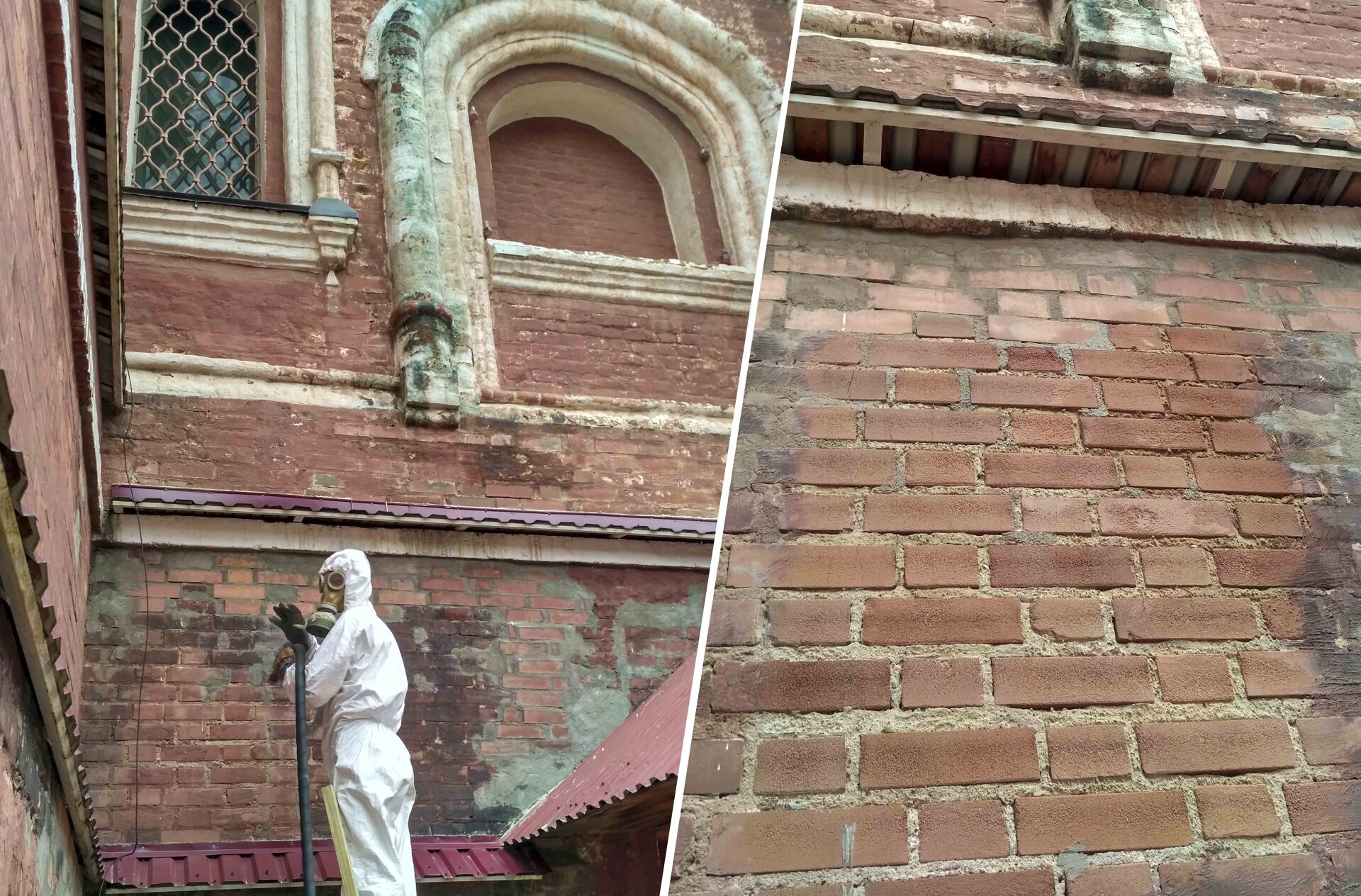 При данной технологии очистка производится специальными неабразивными материалами, которые подаются под давлением на очищаемую поверхность. Активные материалы мягкого бластинга безопасны для человека и являются экологически чистыми.